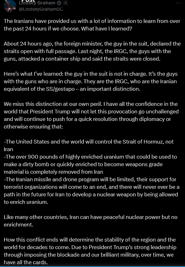 Screenshot 2026-04-19 at 06-23-16 Lindsey Graham on X The Iranians have provided us with a lot of information to learn from over the past 24 hours if we choose. What have I learned About 24 hours ago the foreign minister the guy in the suit decla[...].png