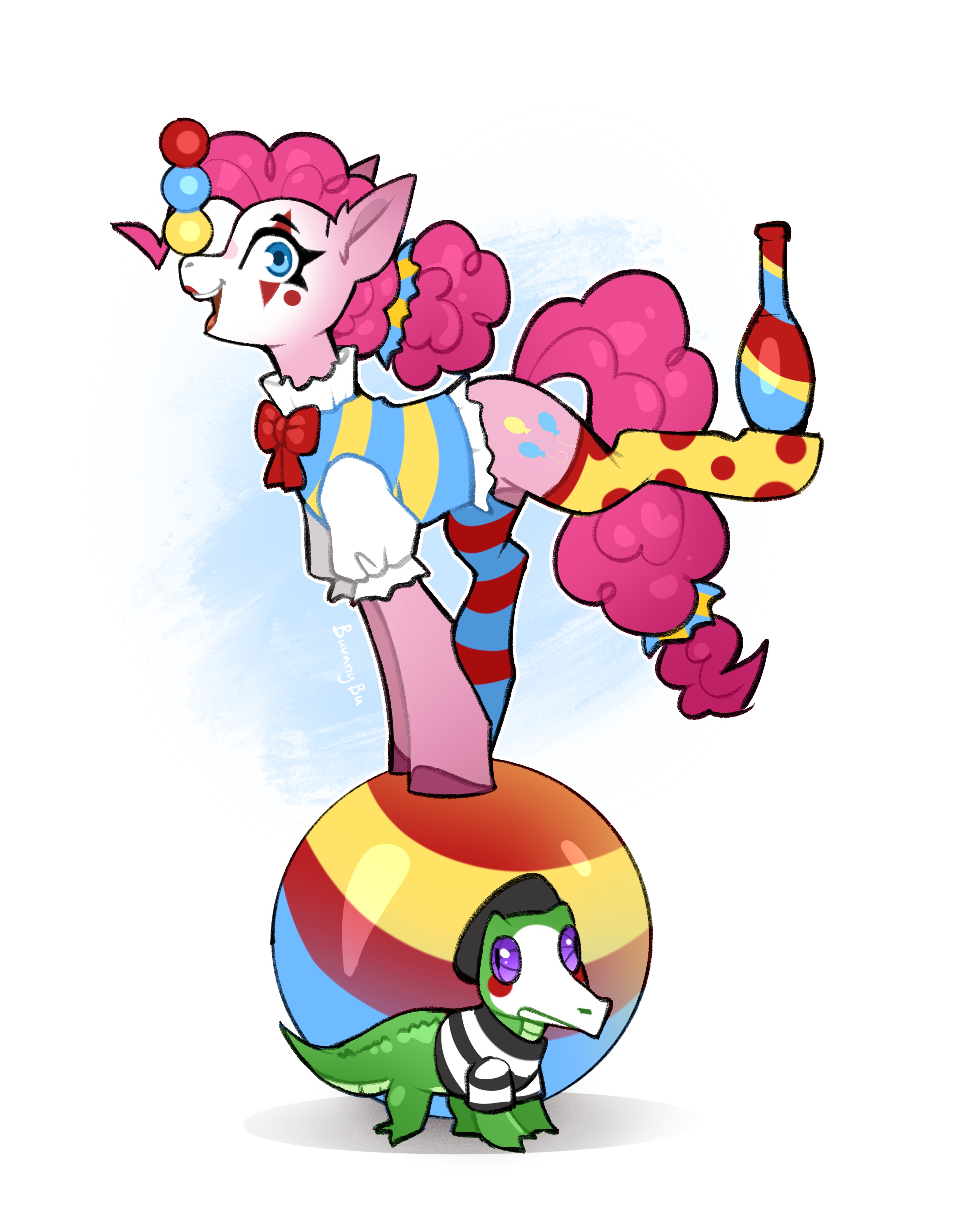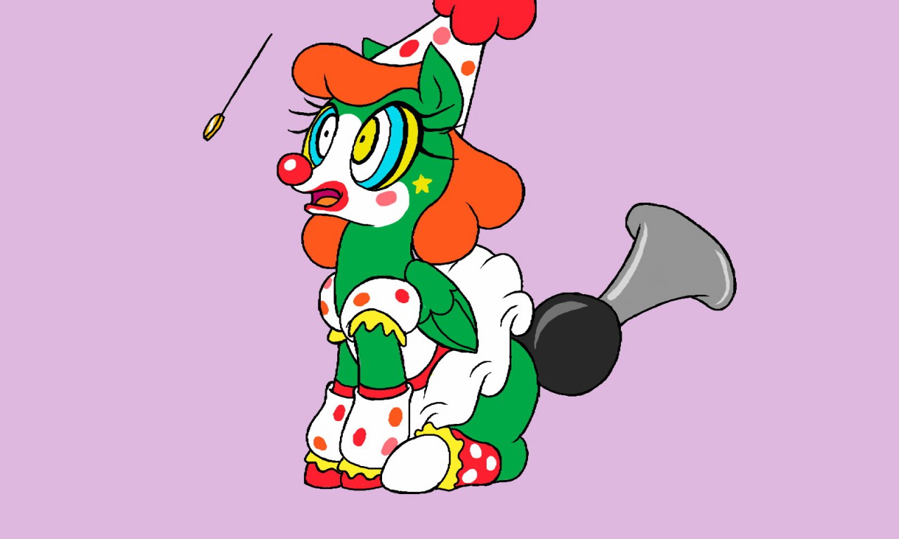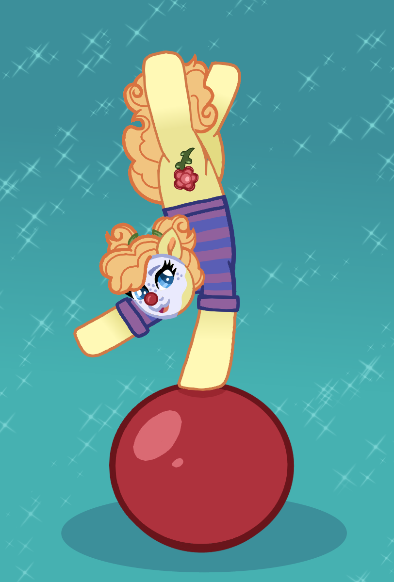 3621960__safe_artist-colon-fuzzybirdy2_oc_oc+only_oc-colon-fizzy+flop_earth+pony_pony_ball_bow_circus_clothes_clown_clown+makeup_clown+nose_gradient+background_.png