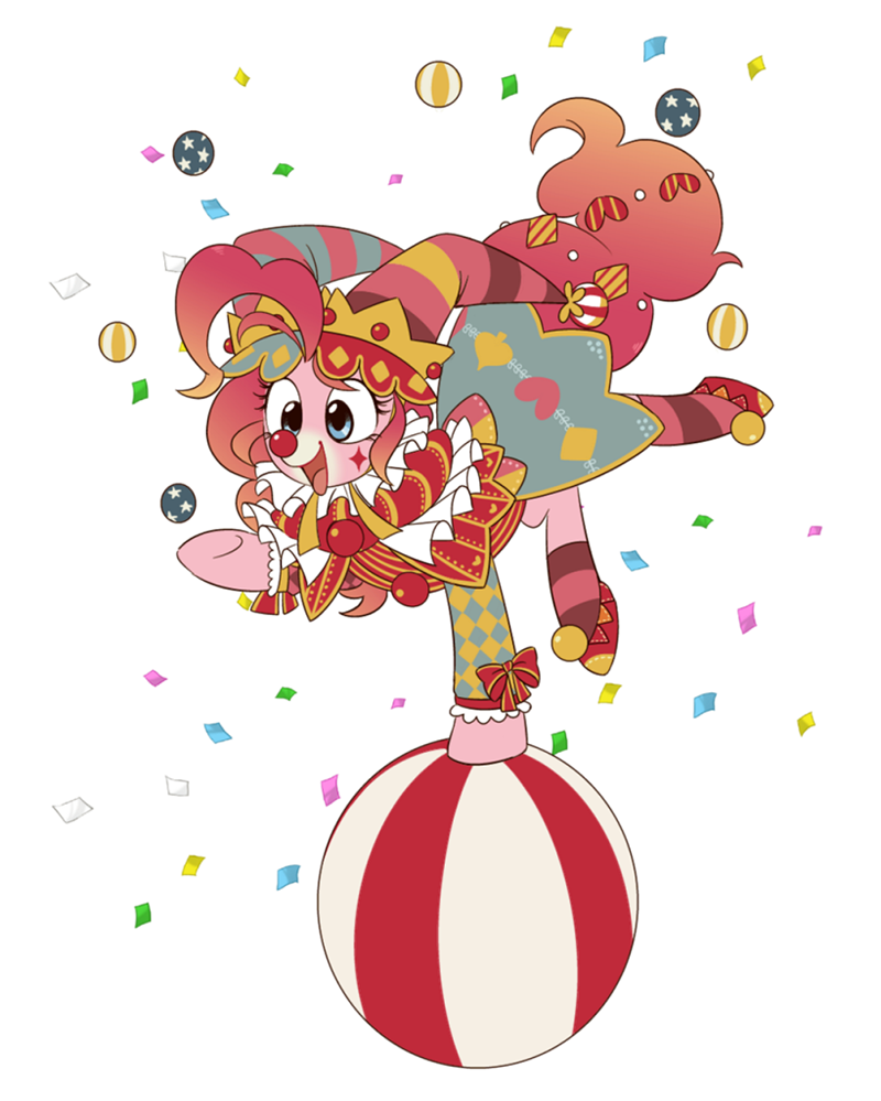 3113841__safe_oc_oc+only_earth+pony_pony_ball_clown_clown+makeup_clown+nose_colored_confetti_red+nose_show+accurate_solo.png