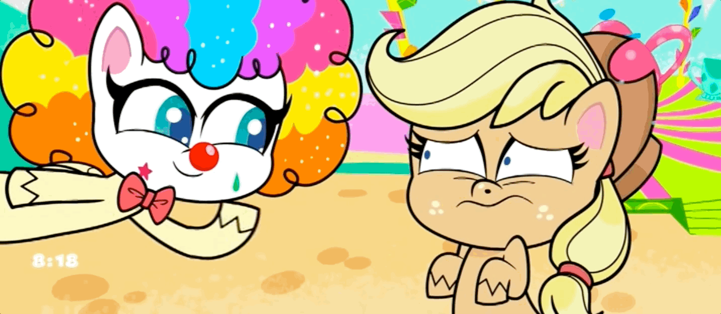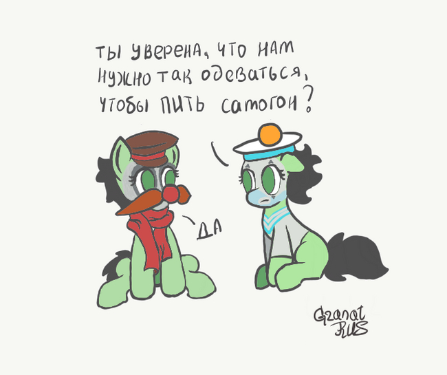 3521205__safe_artist-colon-granatrus_oc_oc+only_oc-colon-filly+anon_earth+pony_pony_calambur_clothes_clown_clown+makeup_clown+nose_colored_comic_cyrillic_duo_ea.jpg