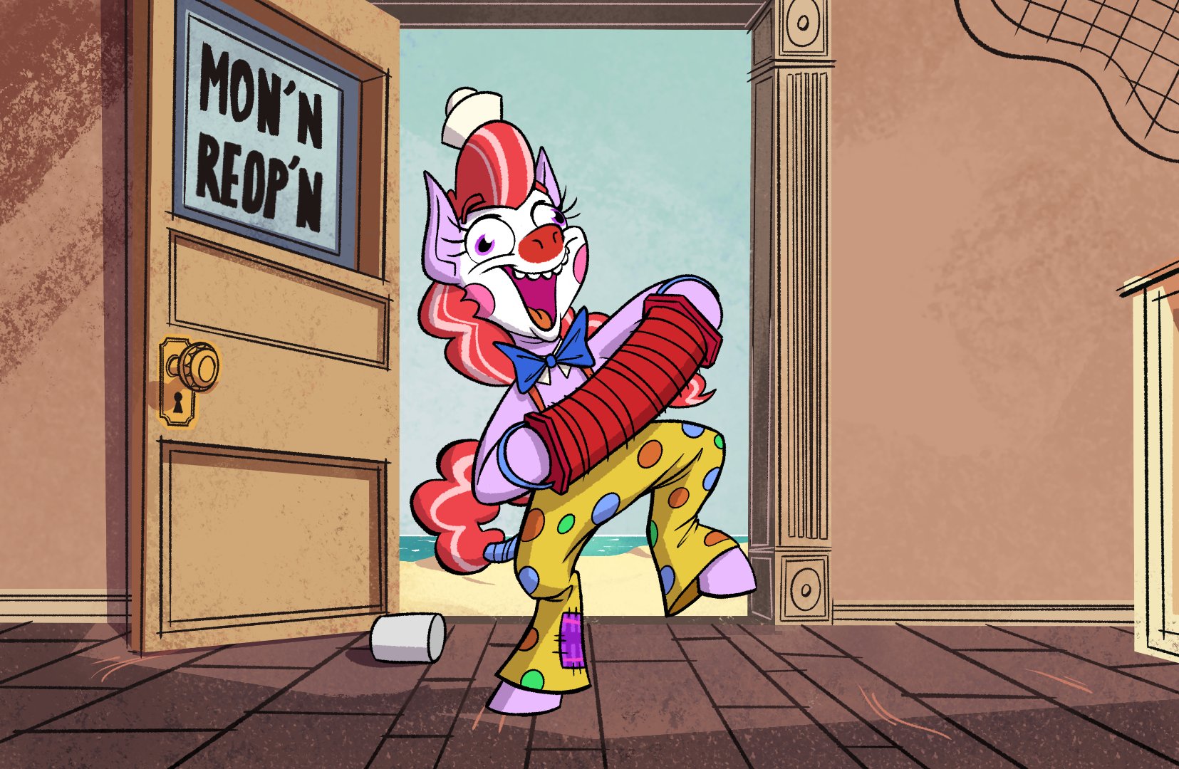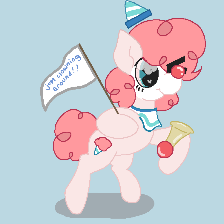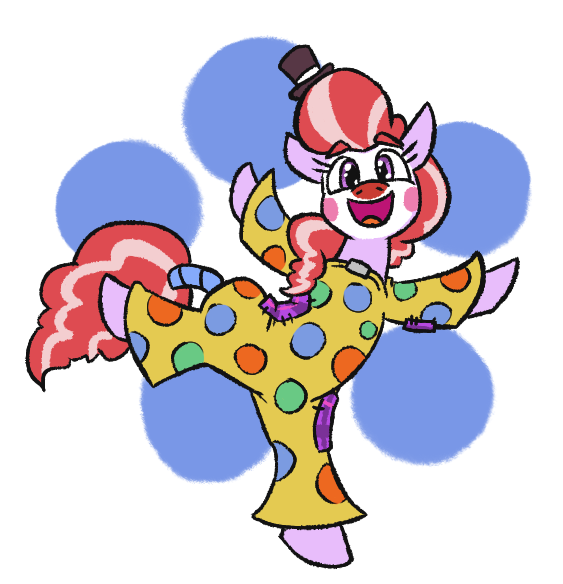 2652207__safe_artist-colon-jargon+scott_oc_oc+only_oc-colon-clown+pony_earth+pony_pony_clown_clown+makeup_female_happy_hat_mare_open+mouth_solo_standing_standin.png
