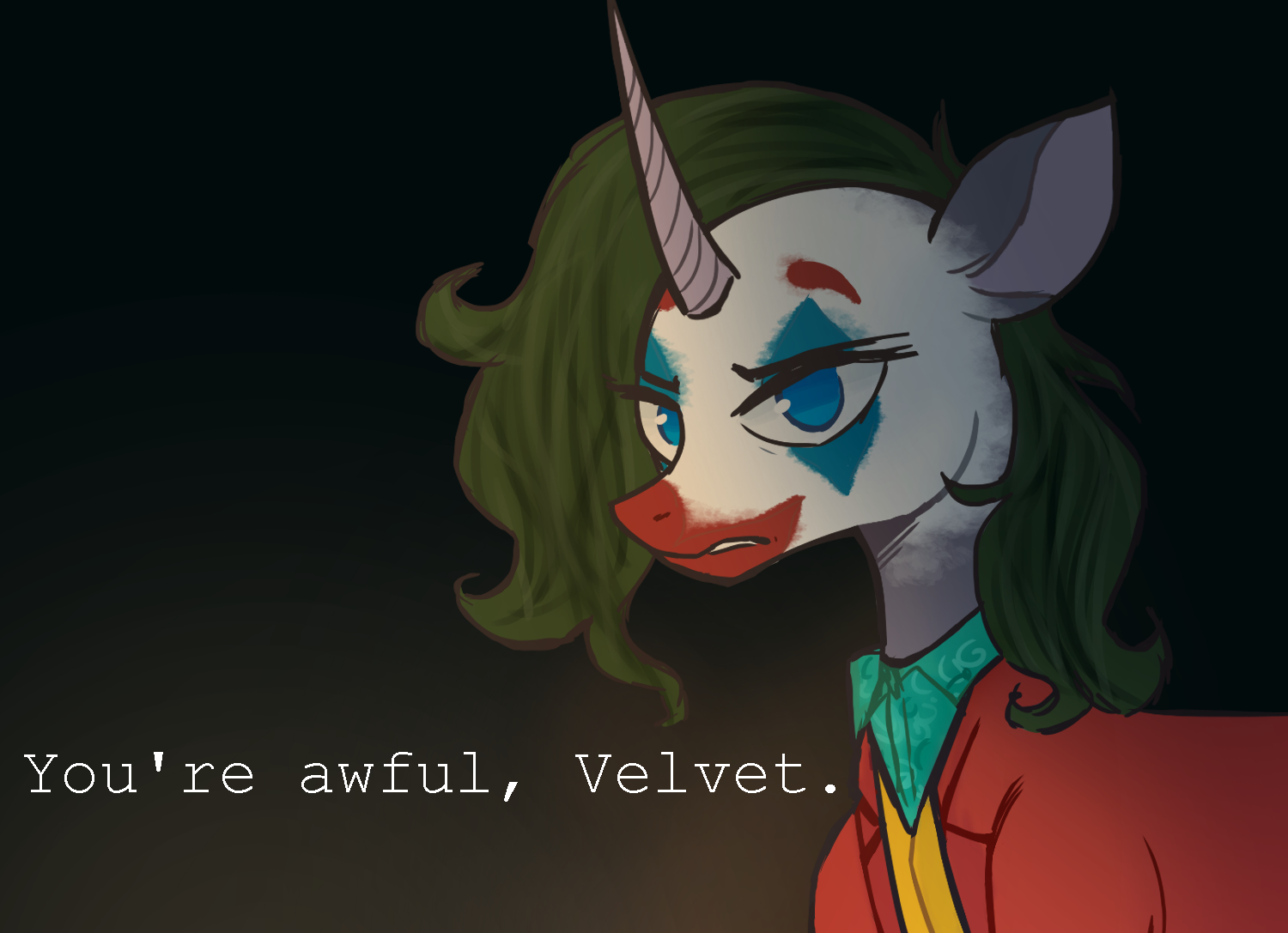 3280725__safe_artist-colon-phreia_oc_oc+only_unicorn_clown_frown_gradient+background_reflection_solo.png