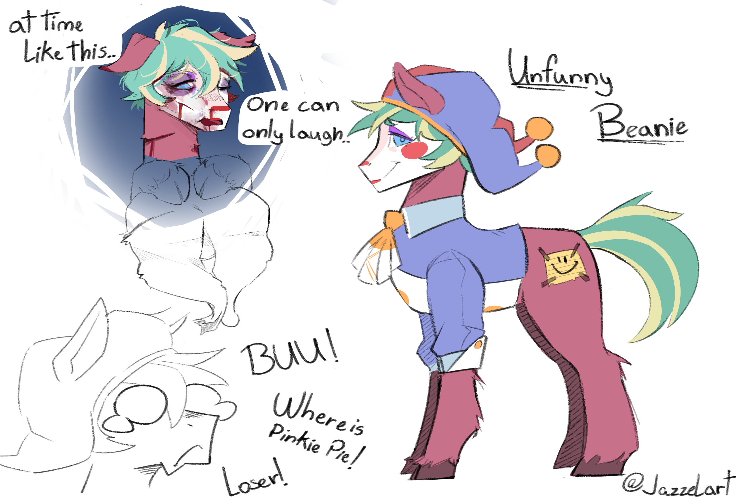 3529875__safe_artist-colon-jazzelart_oc_oc-colon-unfunny+beanie_earth+pony_pony_clown_jester.png