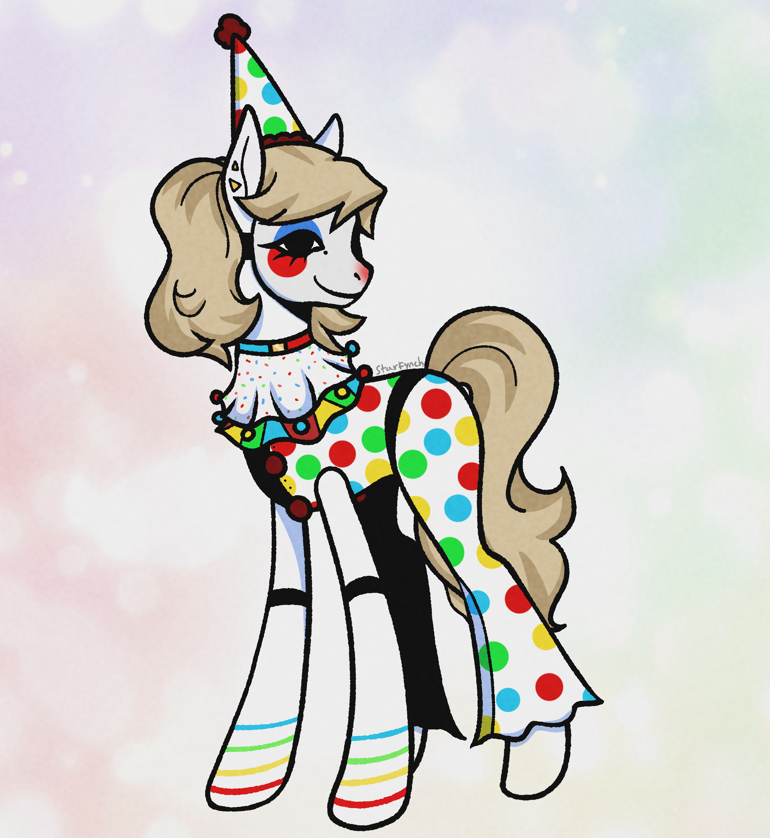 3506273__safe_artist-colon-starfynch_oc_oc+only_earth+pony_pony_circus_clothes_clown_clown+makeup_colorful_concave+belly_female_mare_outfit_rainbow_slender_solo.jpg