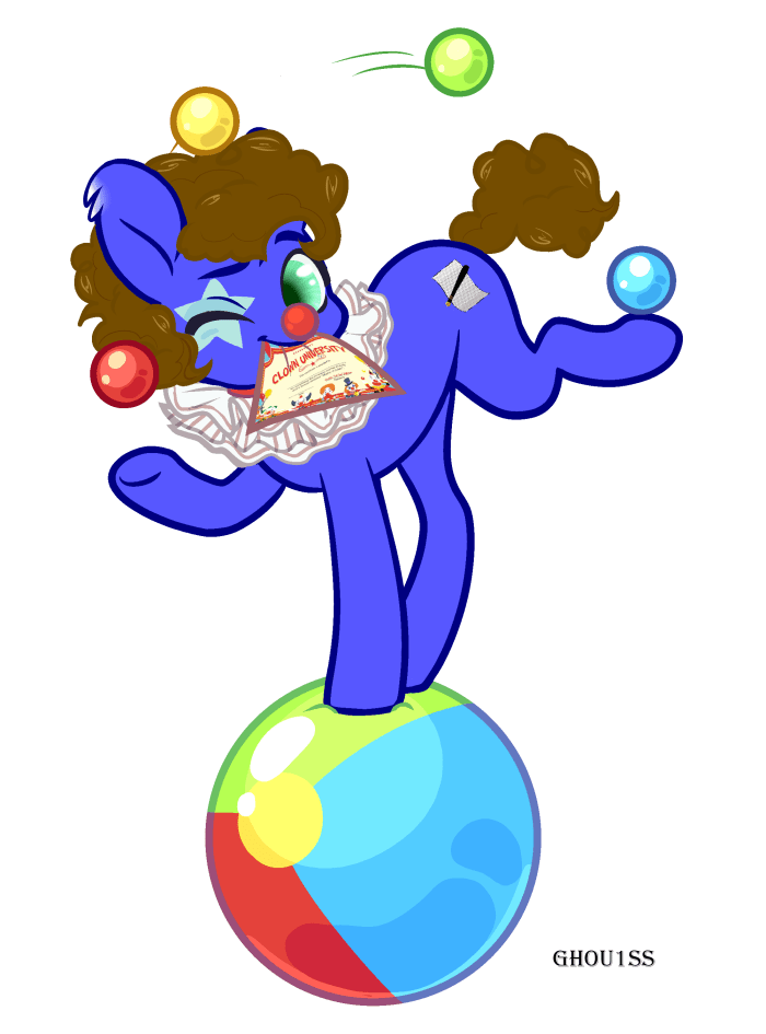 3002535__safe_artist-colon-ghou1ss_oc_oc-colon-silly+scribe_earth+pony_pony_ball_clown_clown+makeup_clown+nose_commission_earth+pony+oc_juggling_one+eye+closed_.png