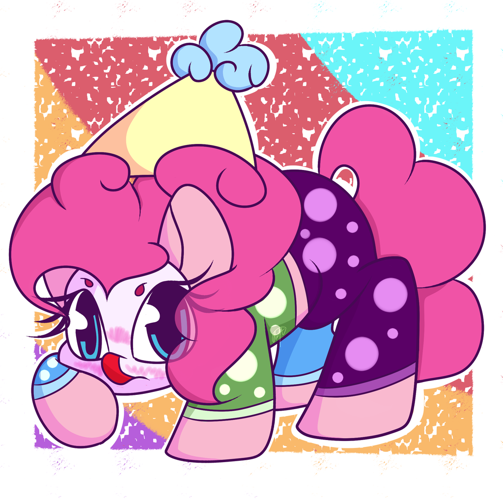 1556721__safe_artist-colon-hedgehog-dash-plant_pinkie+pie_earth+pony_pony_g4_abstract+background_clown_female_hat_mare_party+hat_solo.png