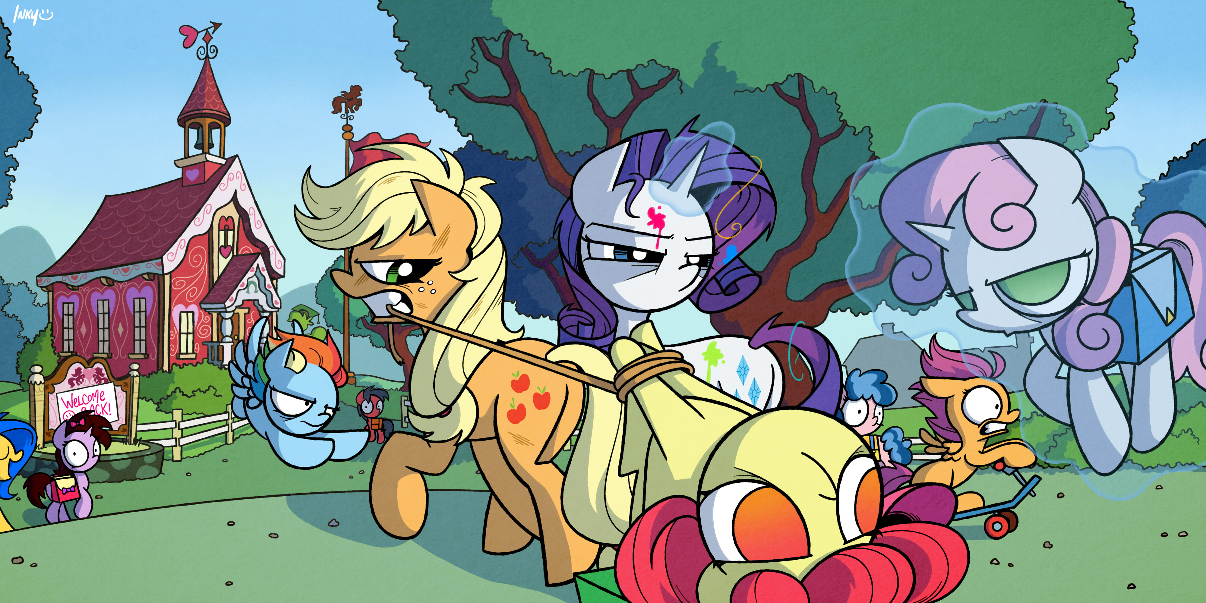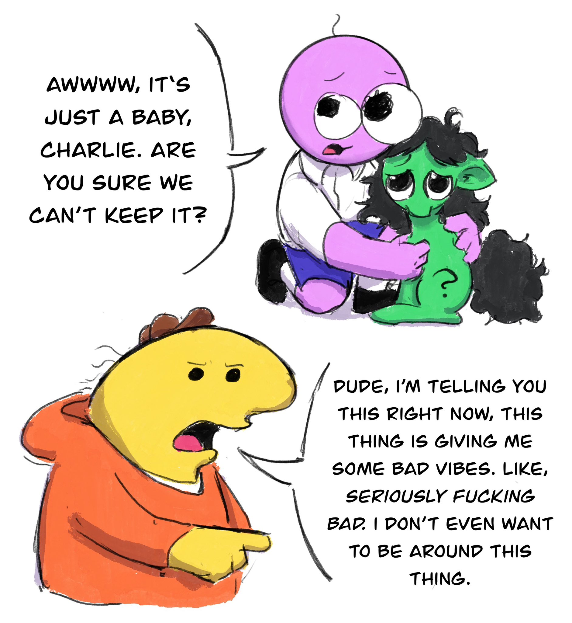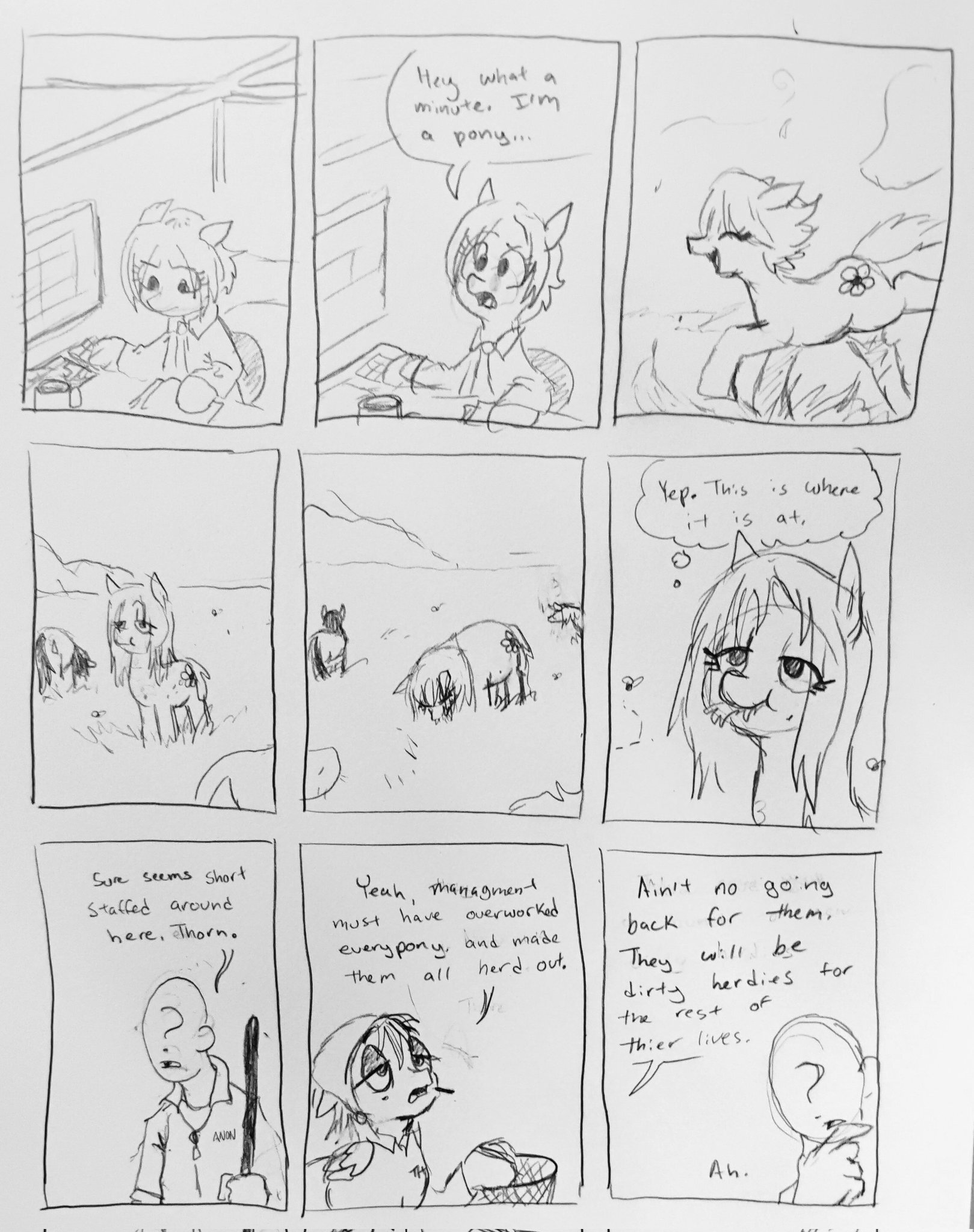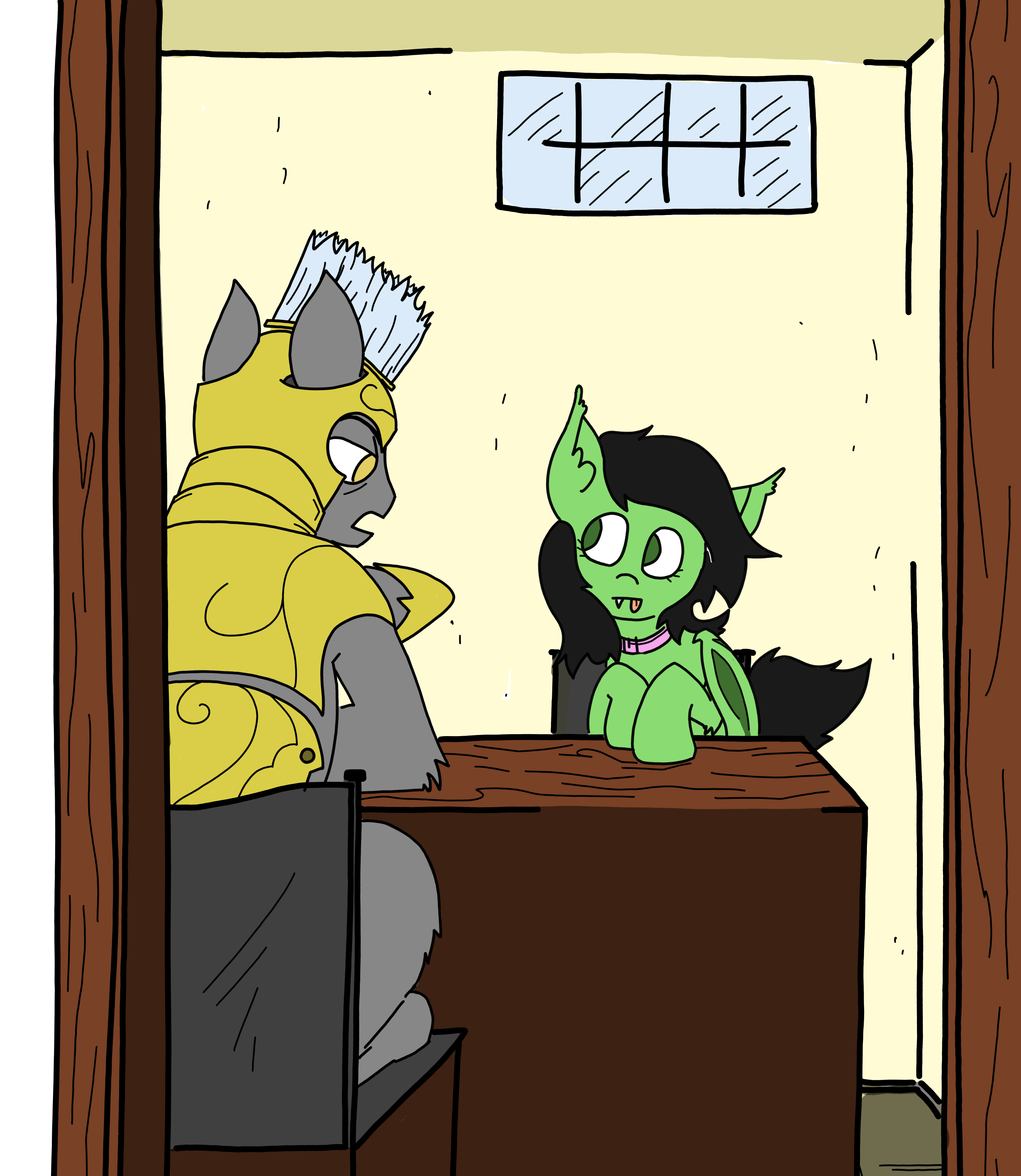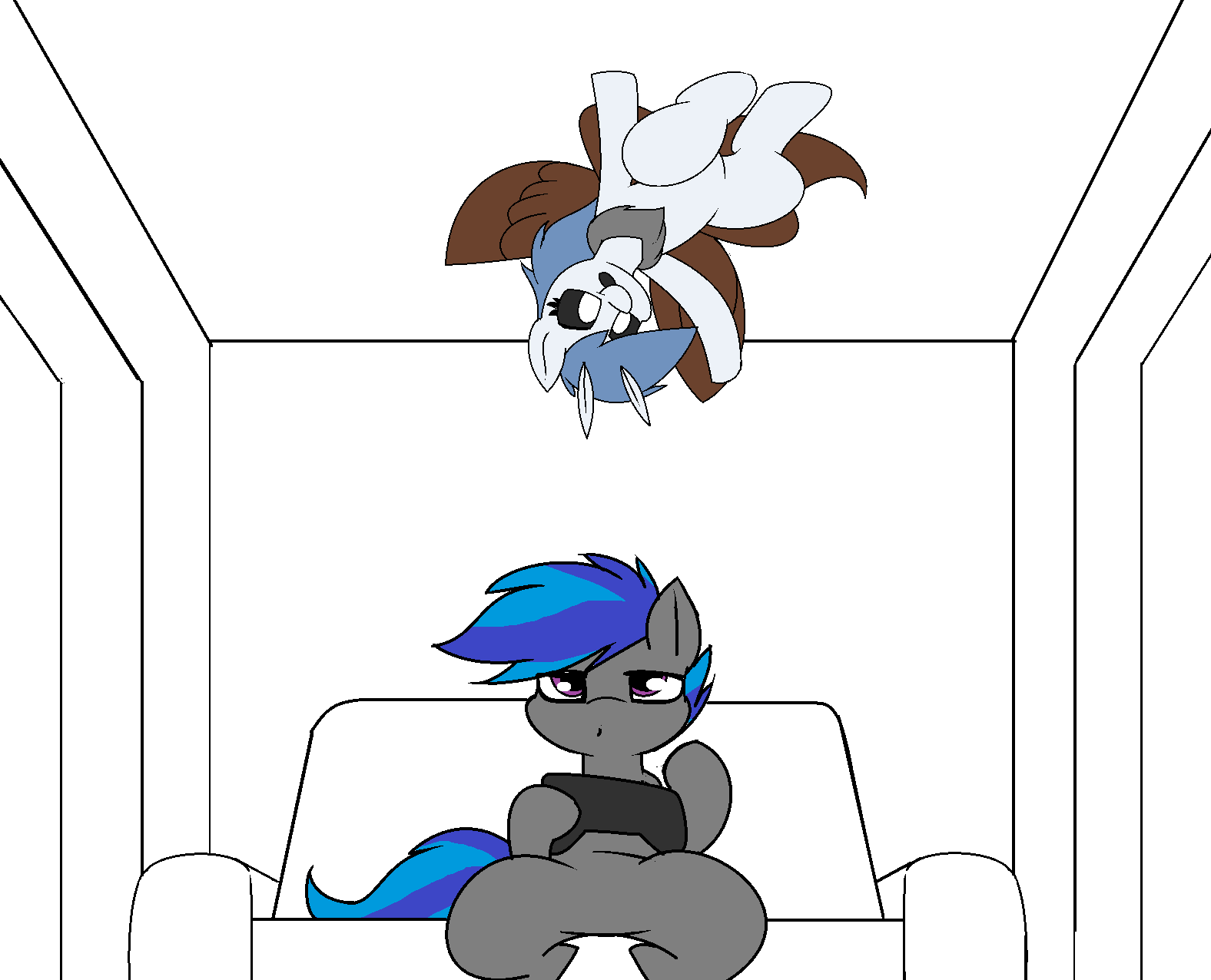 3767849__safe_artist-colon-pony+quarantine_oc_oc+only_oc-colon-anon_oc-colon-thorn_earth+pony_fly_human_insect_pegasus_pony_series-colon-pq+funnies_closed+mouth.jpg