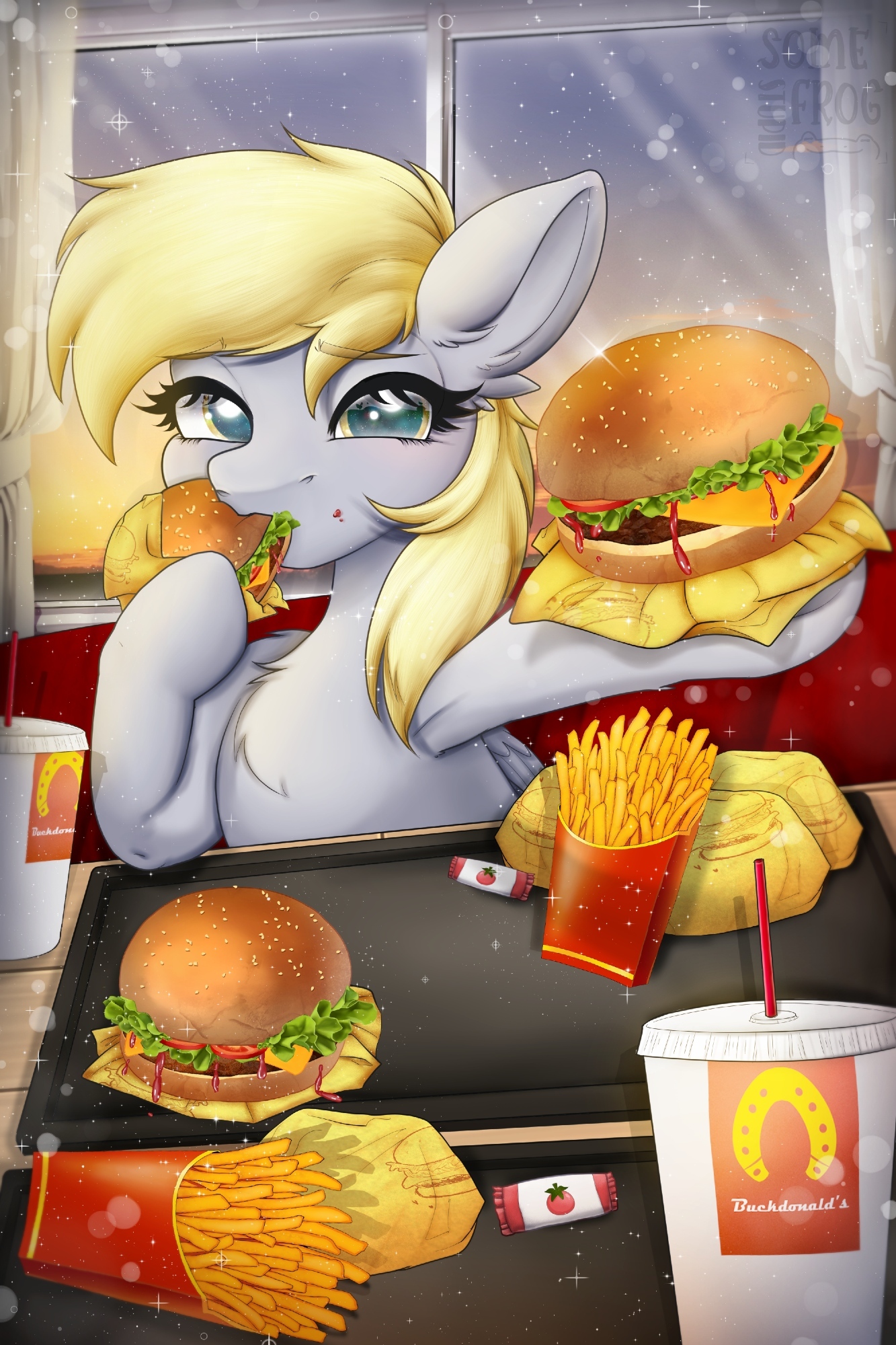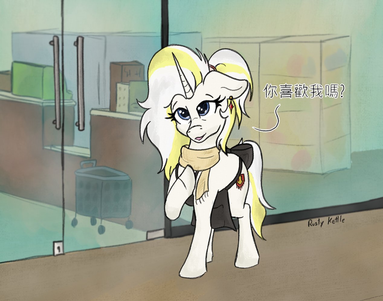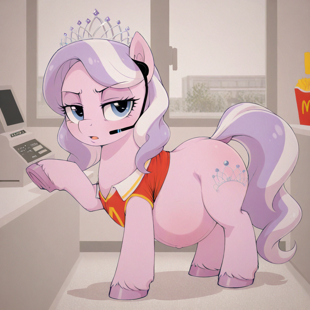 3675253__safe_artist-colon-josephthedumbimpostor_oc_oc+only_oc-colon-mcmare_pony_unicorn_bags+under+eyes_fastfood+worker_horn_mcdonald27s_simple+background_solo.png