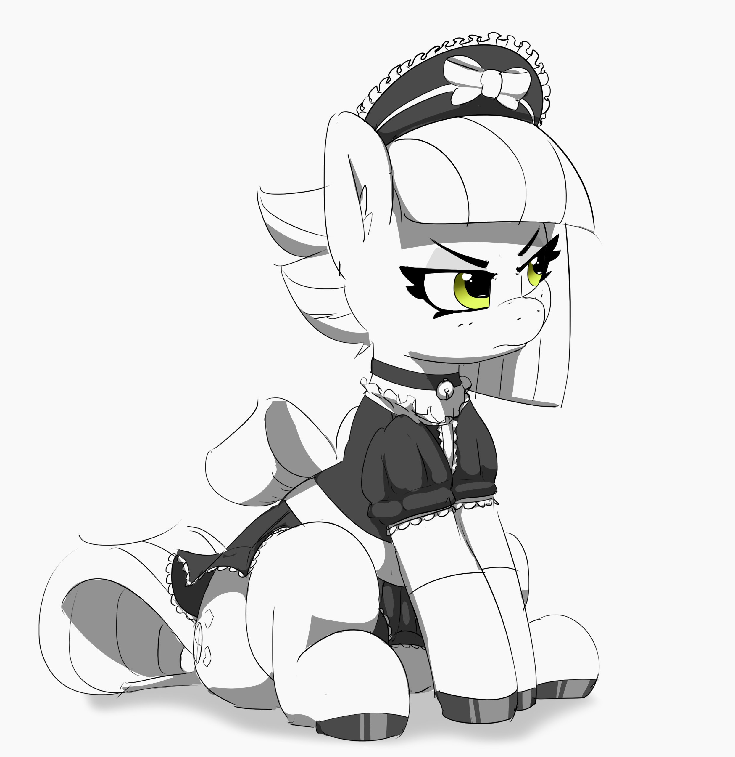 2715612__safe_artist-colon-pabbley_limestone+pie_earth+pony_pony_g4_annoyed_bell_bell+collar_black+and+white_choker_clothes_collar_colored+hooves_cute_dress_eye.jpg