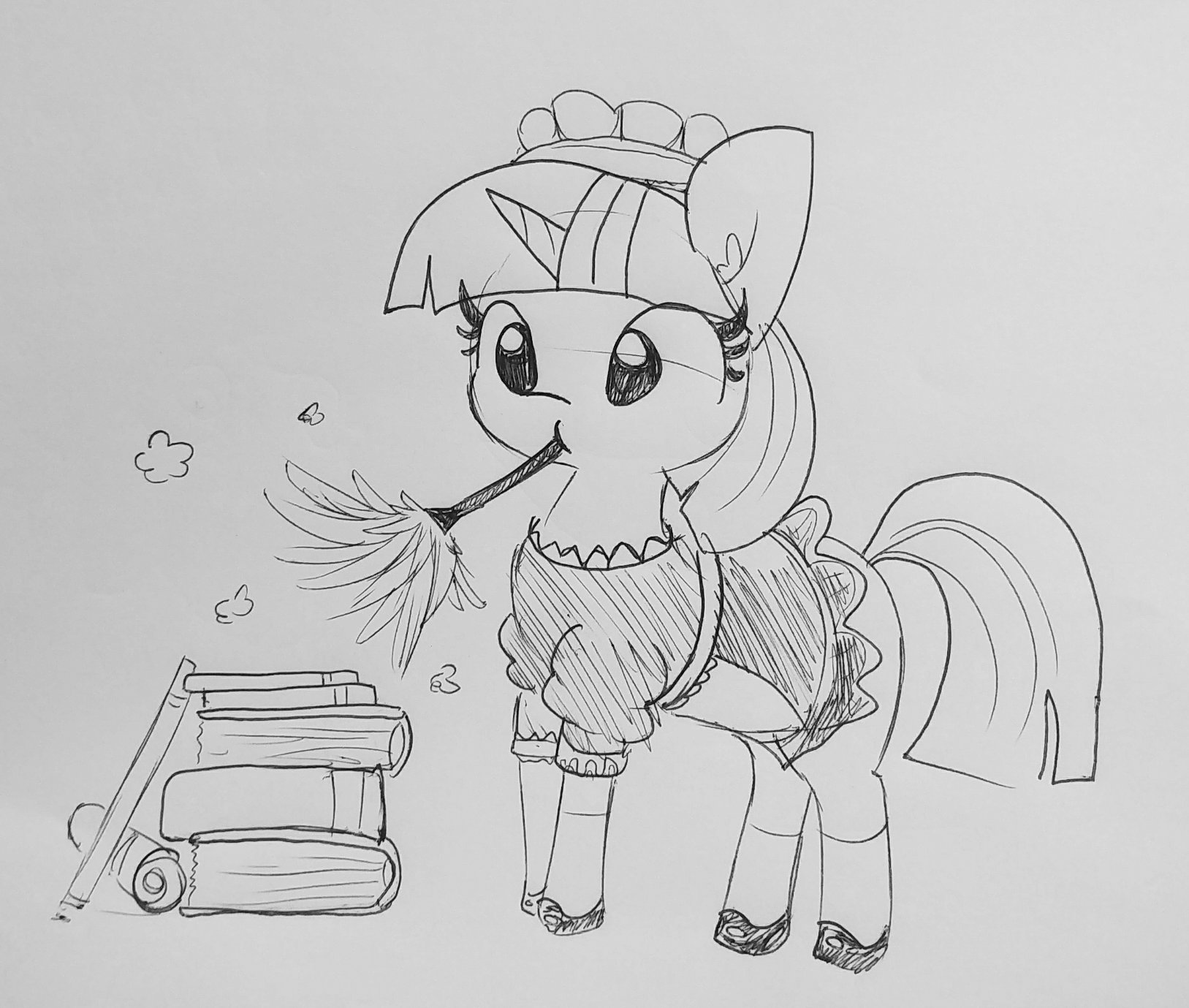 3666284__safe_artist-colon-shagin__twilight+sparkle_alicorn_pony_g4_-dot--dot--dot-_blue+background_blushing_bowtie_clothes_female_maid_maid+headdress_mare_simp.jpg