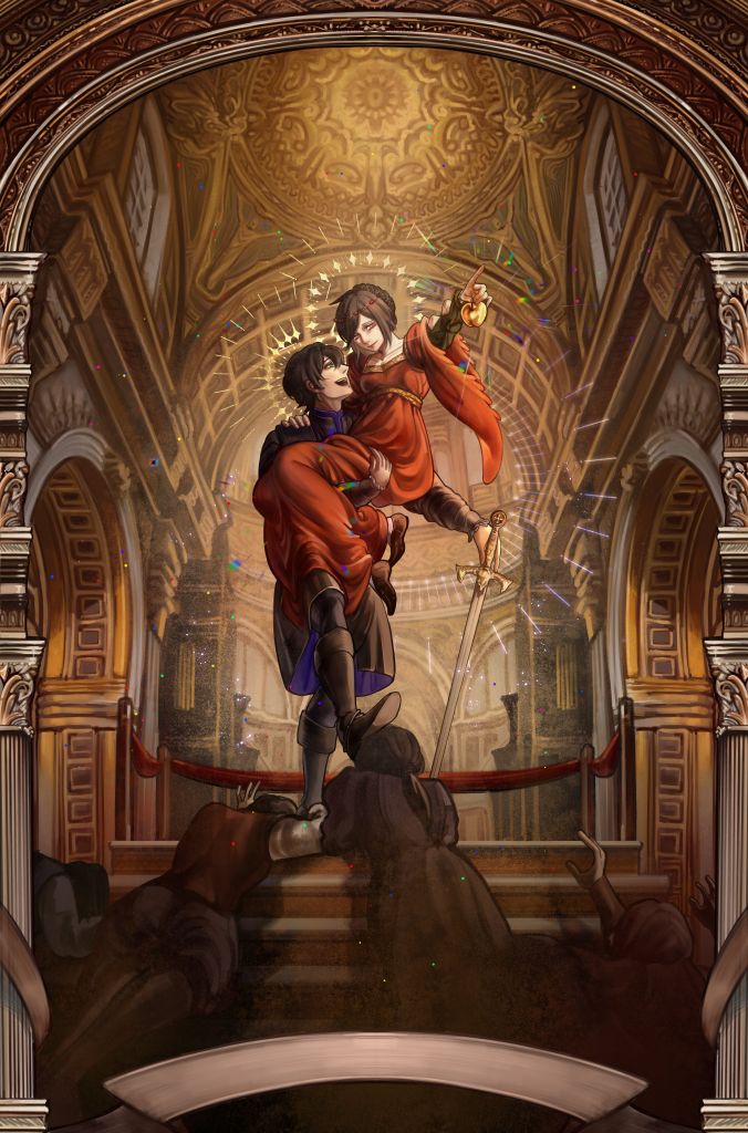 marriage wedding liftdrew sword saint holy sacred church temple parents in front kick head portrait painting.jpg