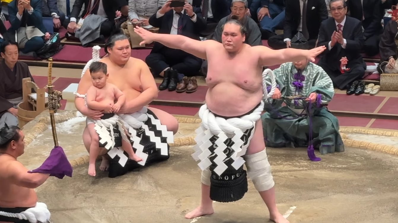 Takanosato Yokozuna Dohyo-iri - Nagoya Basho 1985, Day 1.webm